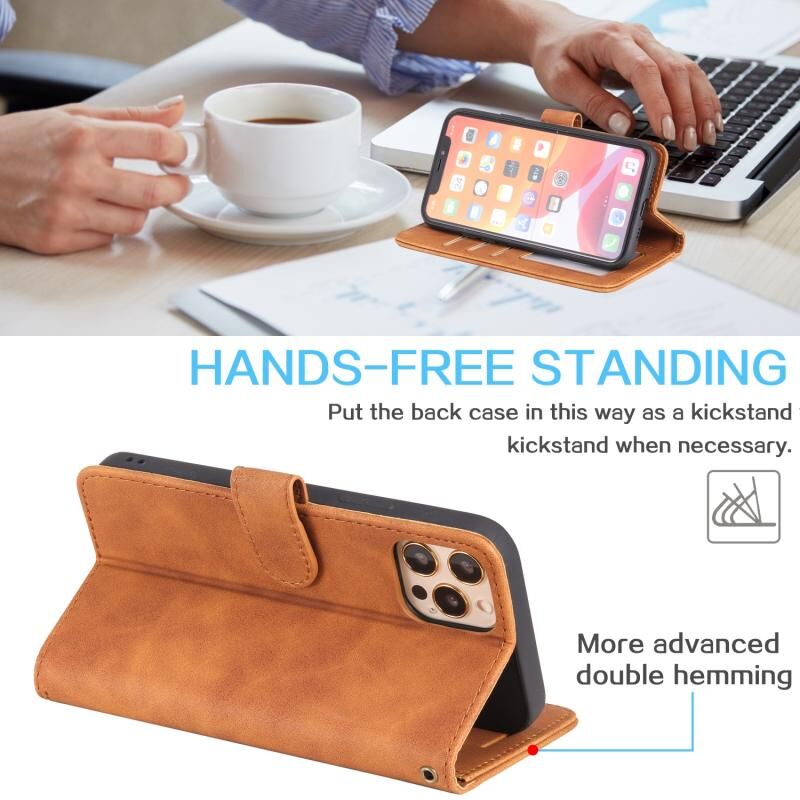 Θήκη τηλεφώνου δέρμα τύπου flip οριζόντια, αντι-κλοπής, με αίσθηση δέρματος για iPhone 12 / 12 Pro (Καφέ)