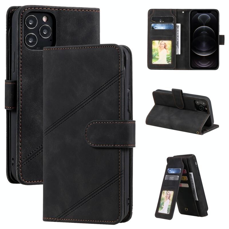 For iPhone 12 / 12 Pro Skin Feel Business Horizontal Flip PU Leather Case with Holder & Multi-Card Slots & Wallet & Lanyard & Photo Frame(Black)