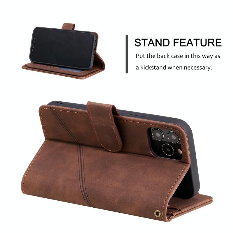 For iPhone 12 / 12 Pro Skin Feel Business Horizontal Flip PU Leather Case with Holder & Multi-Card Slots & Wallet & Lanyard & Photo Frame(Brown)
