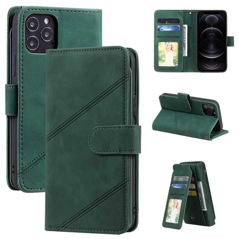 For iPhone 12 / 12 Pro Skin Feel Business Horizontal Flip PU Leather Case with Holder & Multi-Card Slots & Wallet & Lanyard & Photo Frame(Green)
