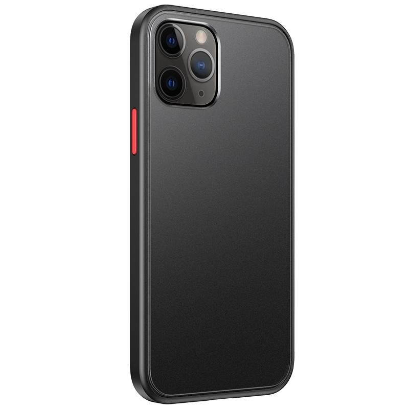 For iPhone 12 / 12 Pro Skin Feel Frosted PC + TPU Shockproof Case with Color Button(Black)