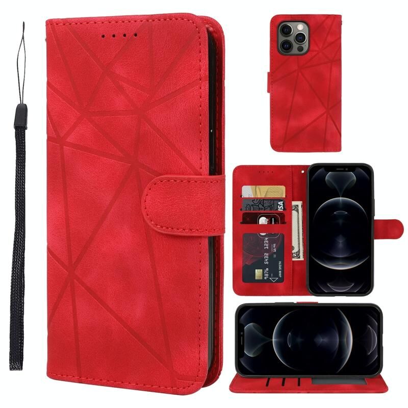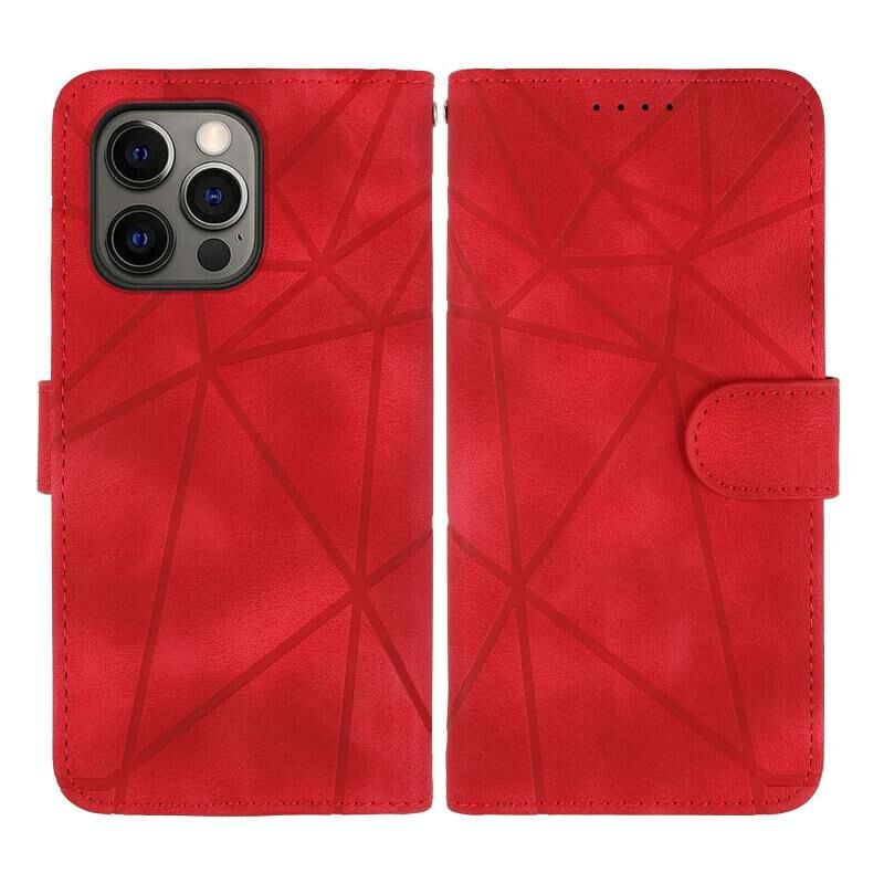 Θήκη τηλεφώνου δερμάτινη με γεωμετρικά σχέδια και αίσθηση δέρματος για iPhone 12 / 12 Pro (Κόκκινο)