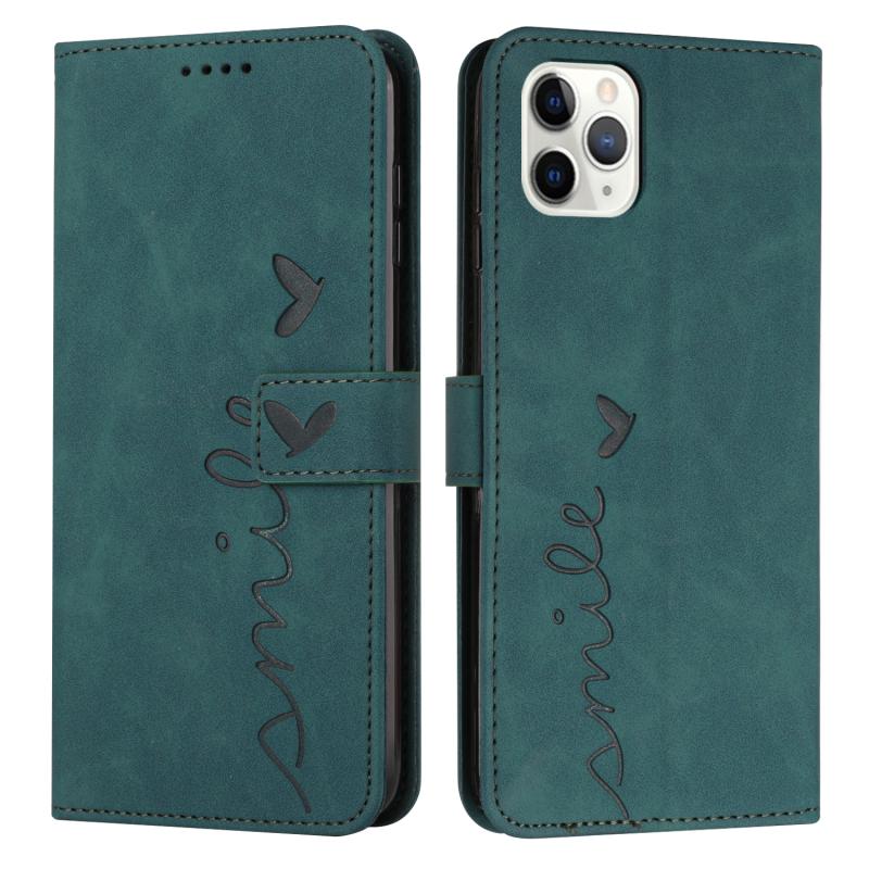 For iPhone 12 / 12 Pro Skin Feel Heart Pattern Leather Phone Case(Green)