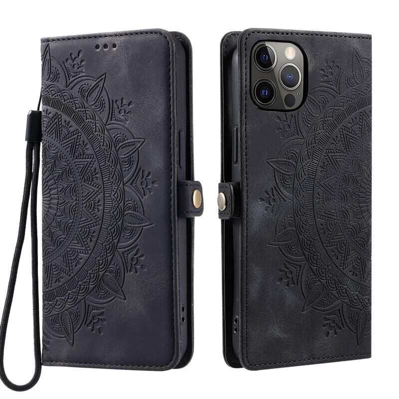 For iPhone 12 / 12 Pro Skin Feel Totem Embossed Leather Phone Case(Black)