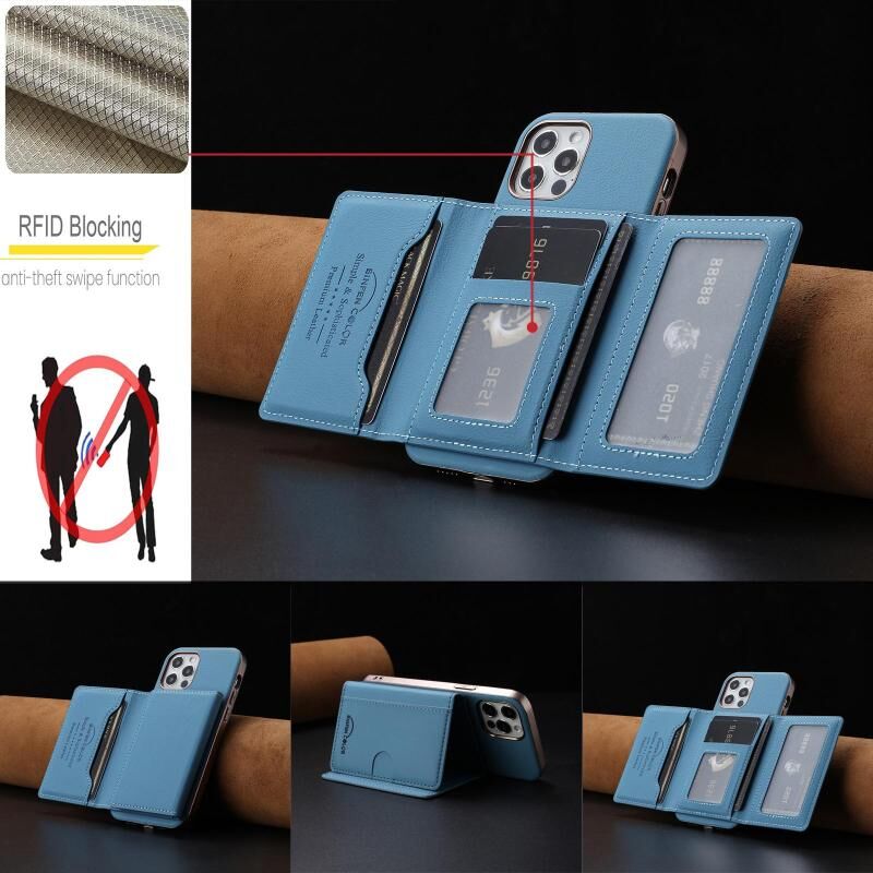 2. Magnetic Tri-Fold Wallet Design: Features a horizontal fold with a strong magnetic closure for easy access and secure storage.