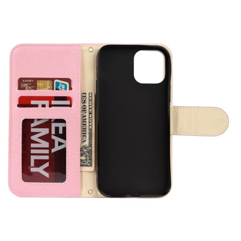 Θήκη δέρματος οριζόντιας αναδίπλωσης με χρώματα patchwork για iPhone 12 / 12 Pro με βάση στήριξης & κορνίζα φωτογραφιών & θήκες καρτών & πορτοφόλι (Κόκκινο Ρόδο)