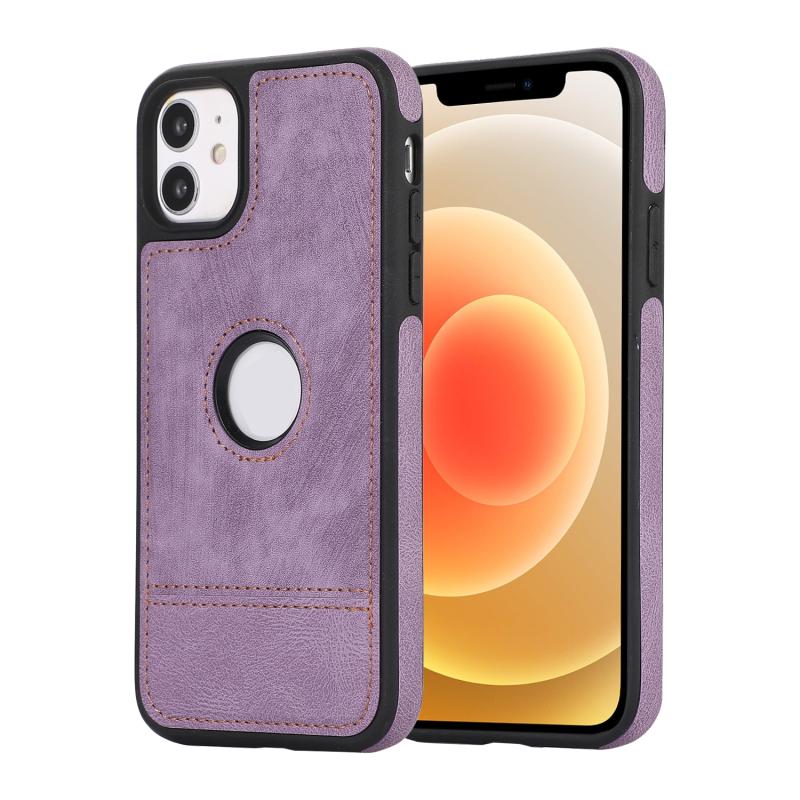 For iPhone 12 / 12 Pro Splicing Sewing Hollow Cutout PU Phone Case(Purple)