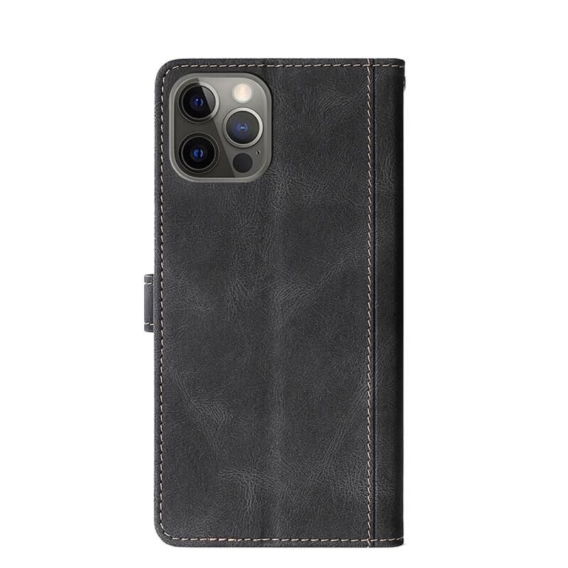 For iPhone 12 / 12 Pro Stitching Skin Feel Magnetic Buckle Horizontal Flip PU Leather Case with Holder & Card Slots & Wallet(Black)