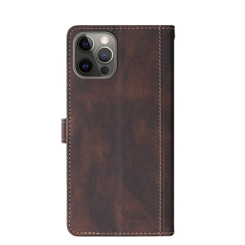 For iPhone 12 / 12 Pro Stitching Skin Feel Magnetic Buckle Horizontal Flip PU Leather Case with Holder & Card Slots & Wallet(Brown)