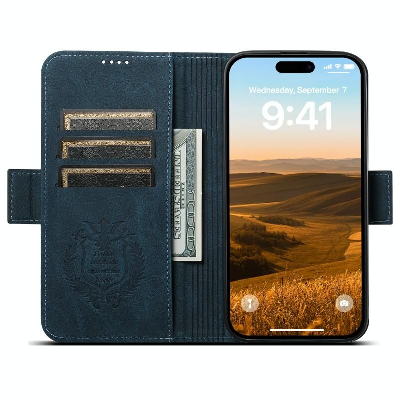 Για iPhone 12 / 12 Pro SUTENI J07 Πολυλειτουργική Οριζόντια Θήκη Τηλεφώνου από Δέρμα με Magsafe (Μπλε) (Suteni)
