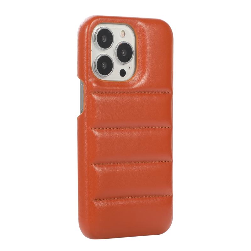 For iPhone 12 / 12 Pro Thick Down Jacket Soft PU Phone Case(Brown)