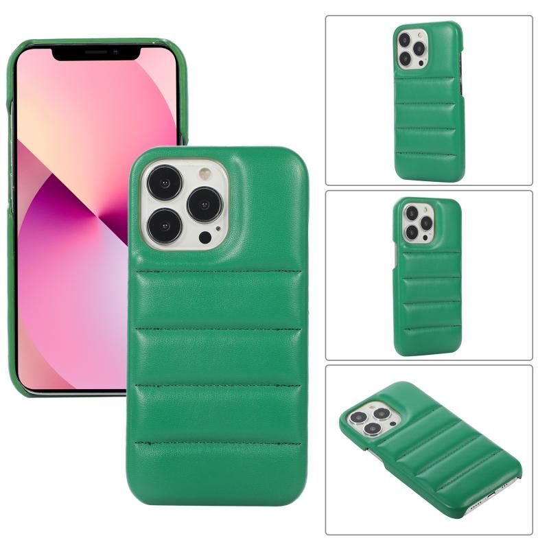 For iPhone 12 / 12 Pro Thick Down Jacket Soft PU Phone Case(Dark Green)