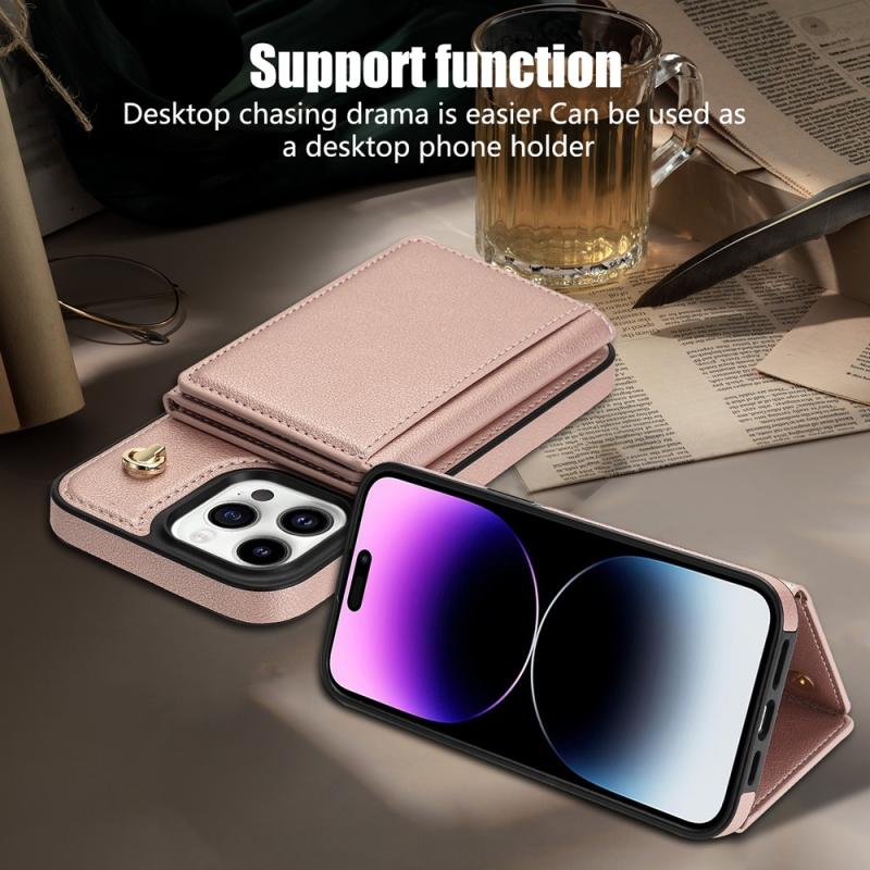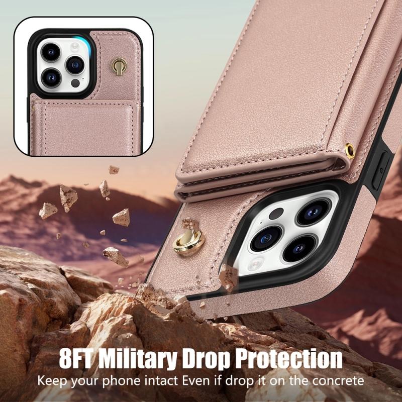 Θήκη iPhone 12 / 12 Pro με Κάρτες & Λουρί (Ροζ Χρυσό)