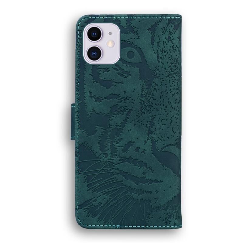Θήκη δέρματος οριζόντιας αναδίπλωσης με σχέδιο ανάγλυφου τίγρη για iPhone 12 / 12 Pro με βάση & υποδοχές καρτών & πορτοφόλι (Μαύρο)