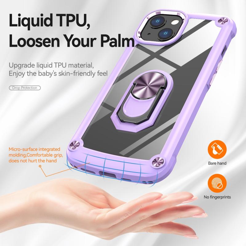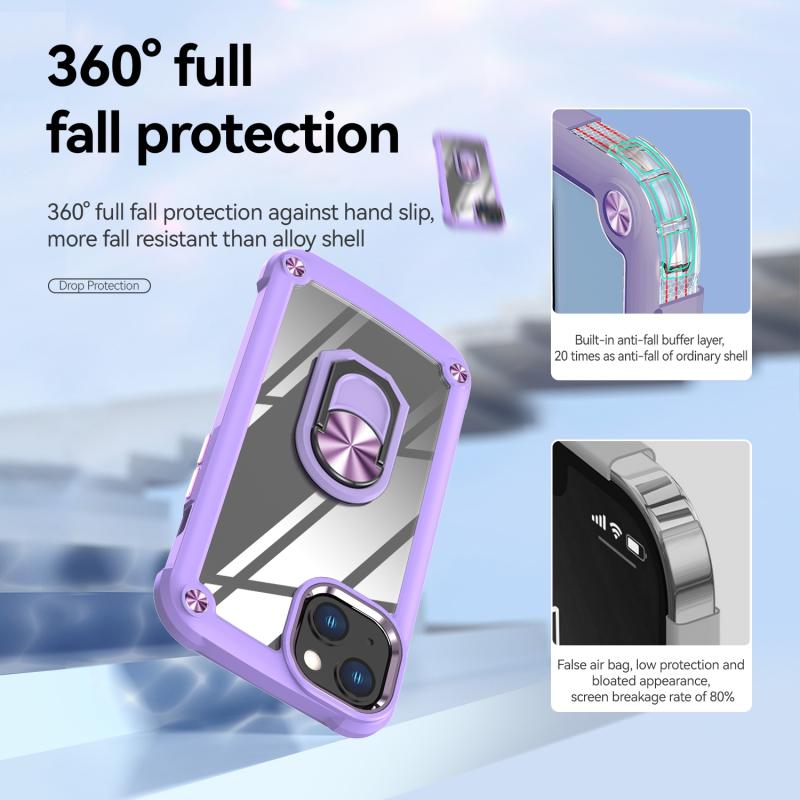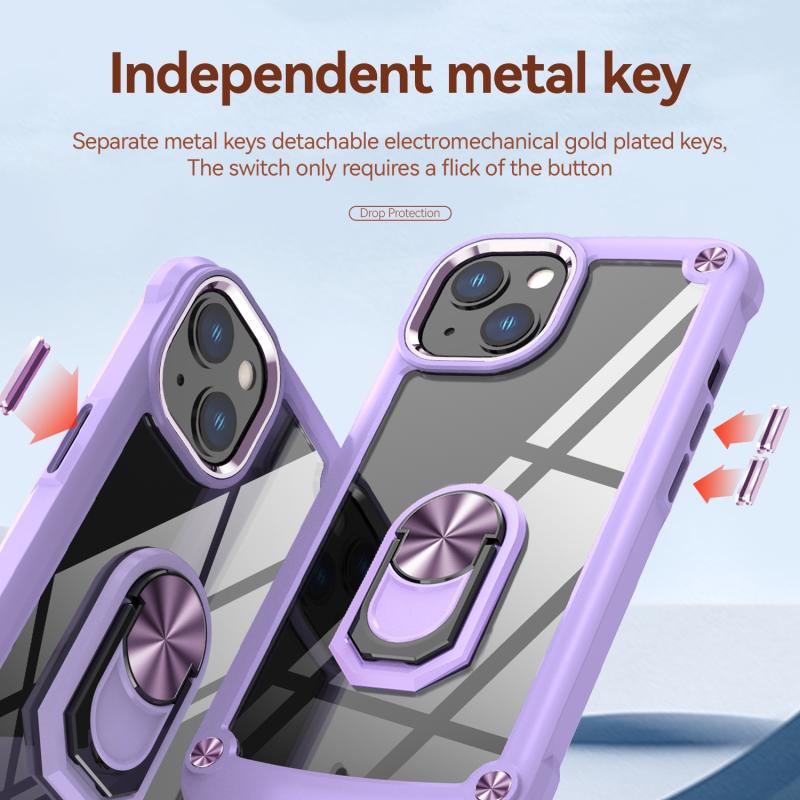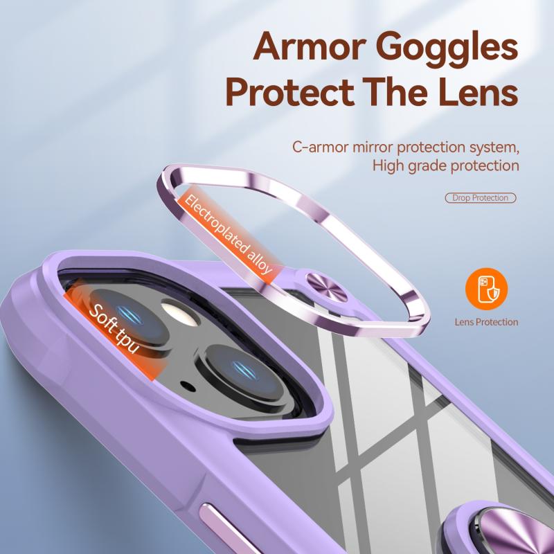 For iPhone 12 / 12 Pro TPU + PC Lens Protection Phone Case with Ring Holder(Purple)