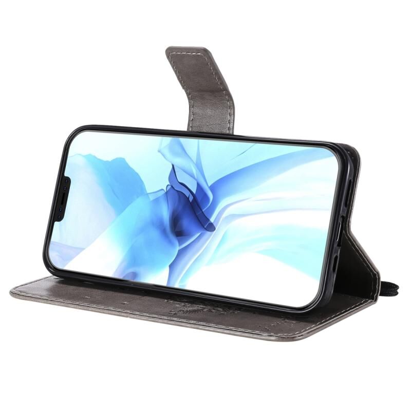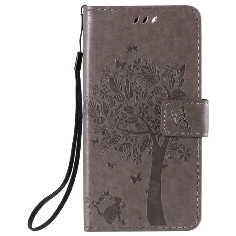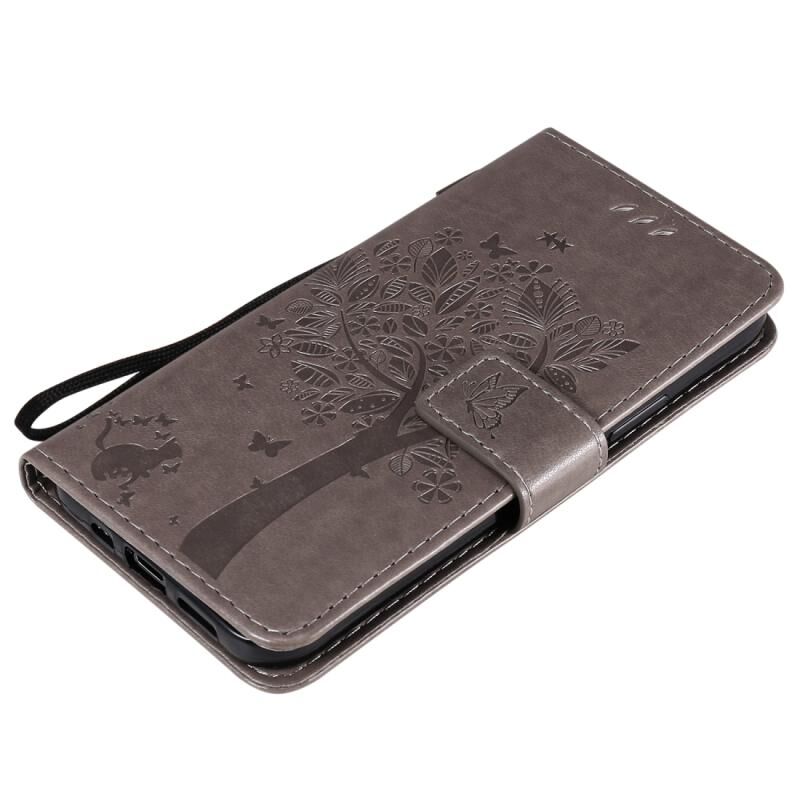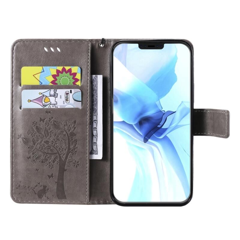 Θήκη δέρματος οριζόντιας αναδίπλωσης για iPhone 12 / 12 Pro με ανάγλυφο σχέδιο δέντρου & γάτας, με βάση & υποδοχές καρτών & πορτοφόλι & κορδόνι (Πράσινο)