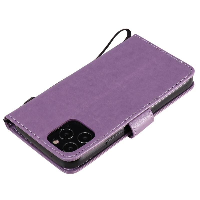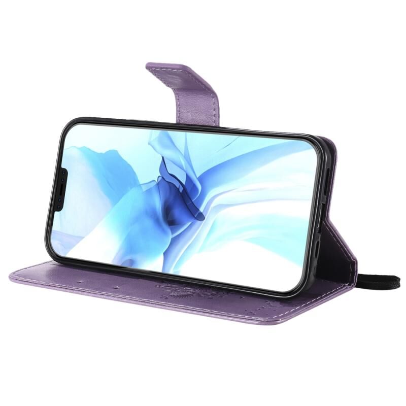 Θήκη δέρματος οριζόντιας αναδίπλωσης για iPhone 12 / 12 Pro με ανάγλυφο σχέδιο δέντρου & γάτας, με βάση & υποδοχές καρτών & πορτοφόλι & κορδόνι (Πράσινο)