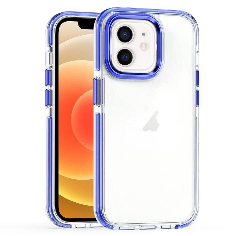 For iPhone 12 / 12 Pro Two-color TPU Transparent PC Phone Case(Blue)