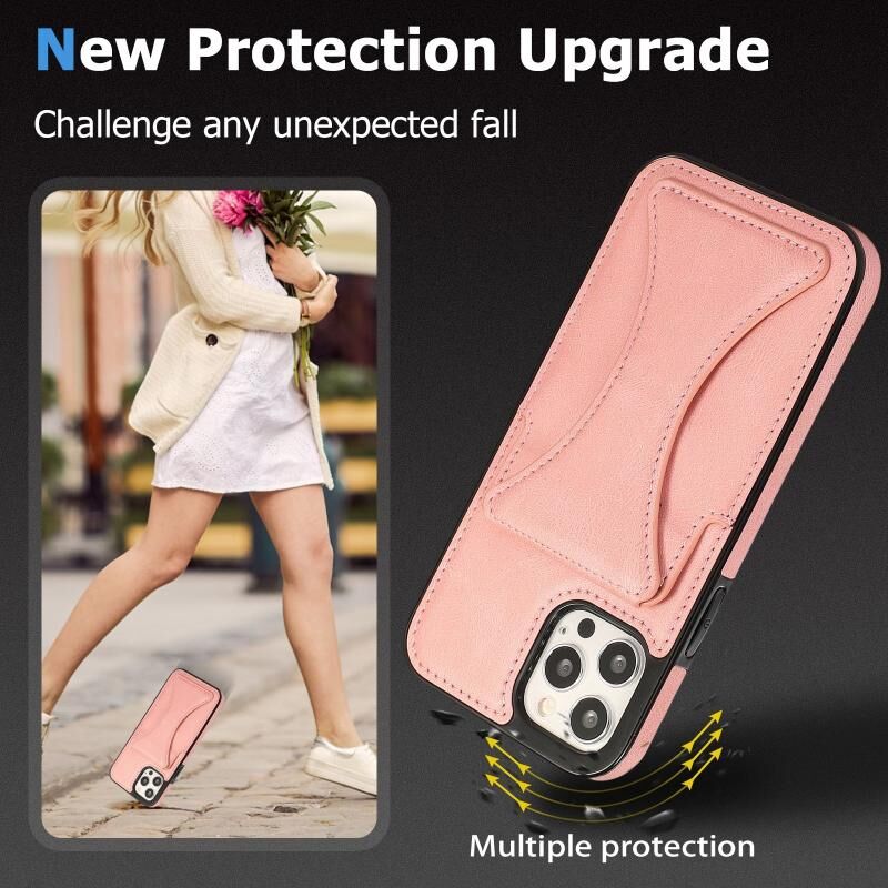 For iPhone 12 / 12 Pro Ultra-thin Shockproof Protective Case with Holder & Metal Magnetic Function(Rose Gold)