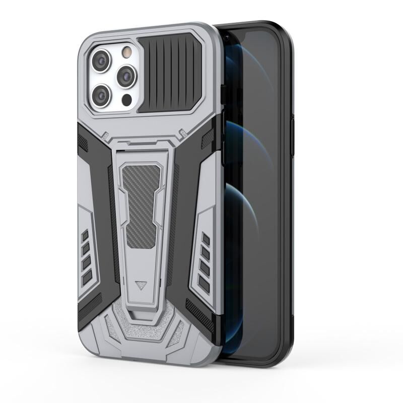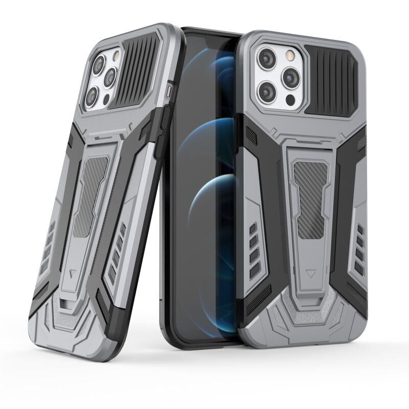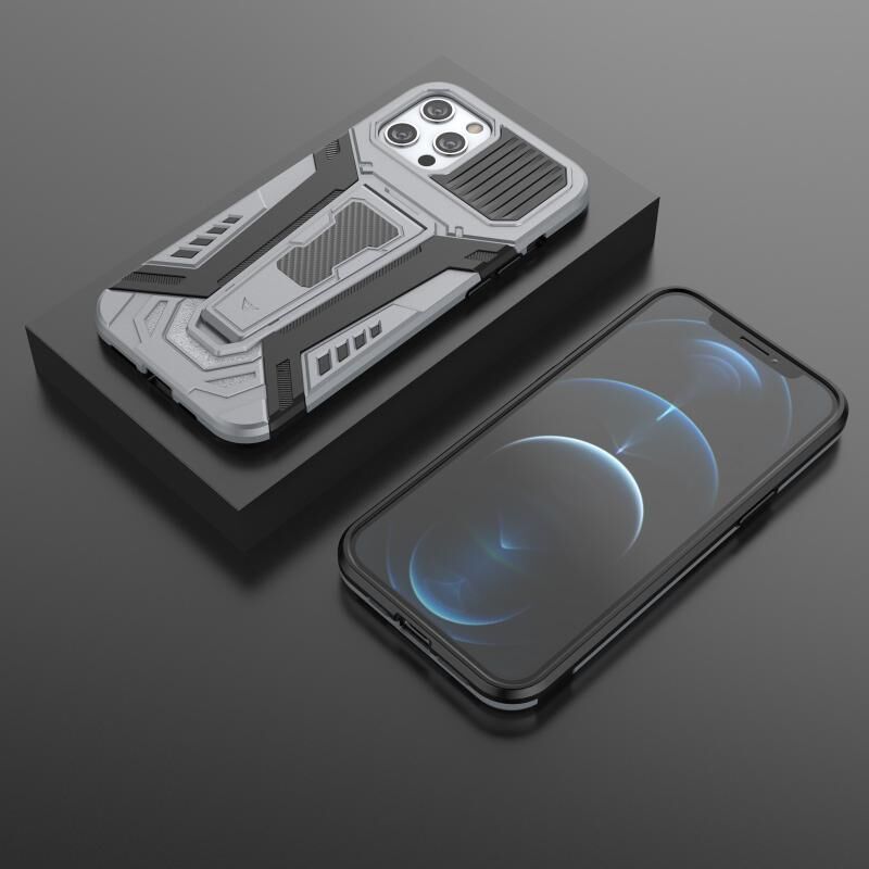 Θήκη προστασίας για iPhone 12 / 12 Pro Σειρά War Chariot, πλήρως προστατευτική, αντικραδασμική από PC + TPU με αόρατο στήριγμα (Γκρι)