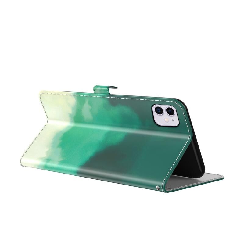 Θήκη δέρματος οριζόντιας αναδίπλωσης με σχέδιο ακουαρέλας για iPhone 12 / 12 Pro με βάση & υποδοχή κάρτας & πορτοφόλι (Κυανό Πράσινο)