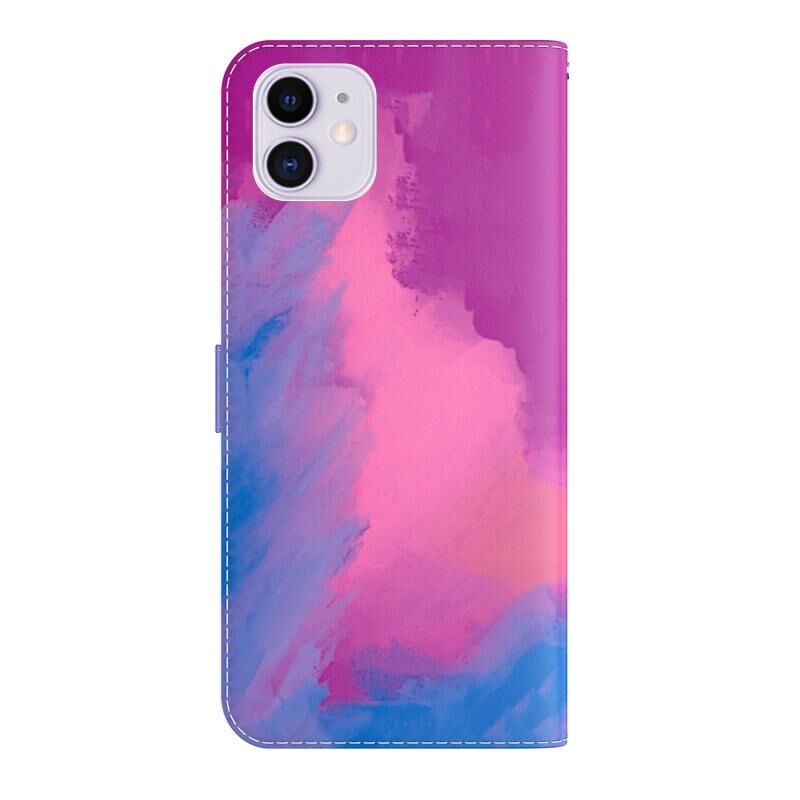 Θήκη δέρματος οριζόντιας αναδίπλωσης με σχέδιο ακουαρέλας για iPhone 12 / 12 Pro με βάση & υποδοχή κάρτας & πορτοφόλι (Μωβ-Κόκκινο)