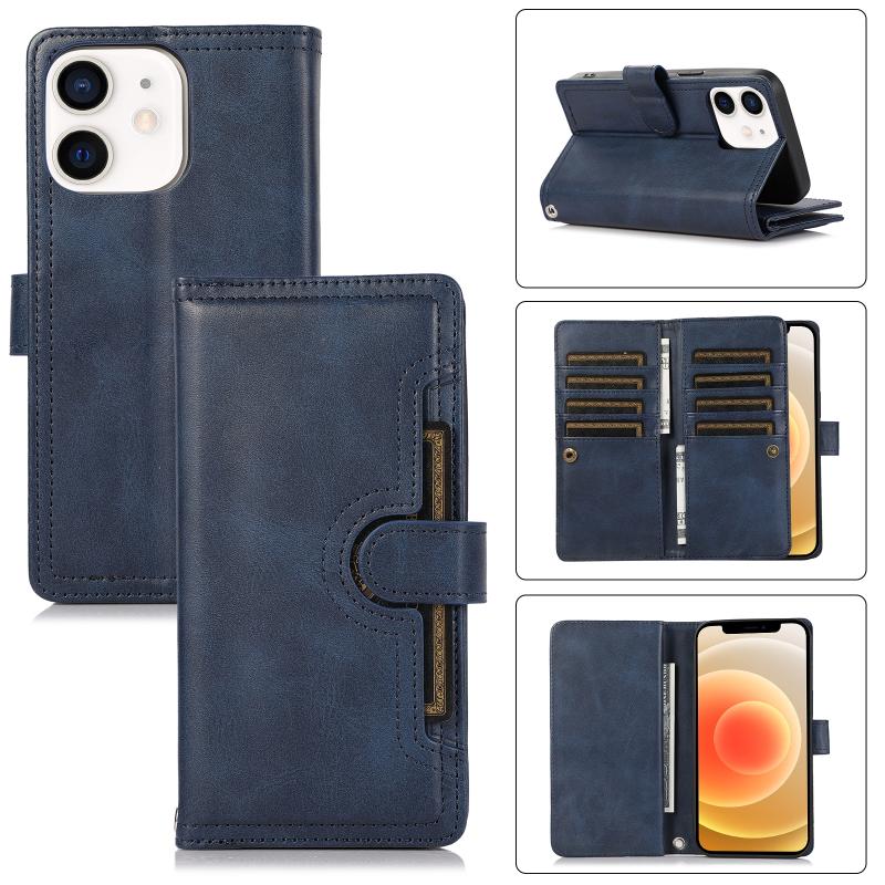 Θήκη iPhone 12 / 12 Pro Δερμάτινη με Θήκη Κάρτας & Λουράκι (Μπλε)
