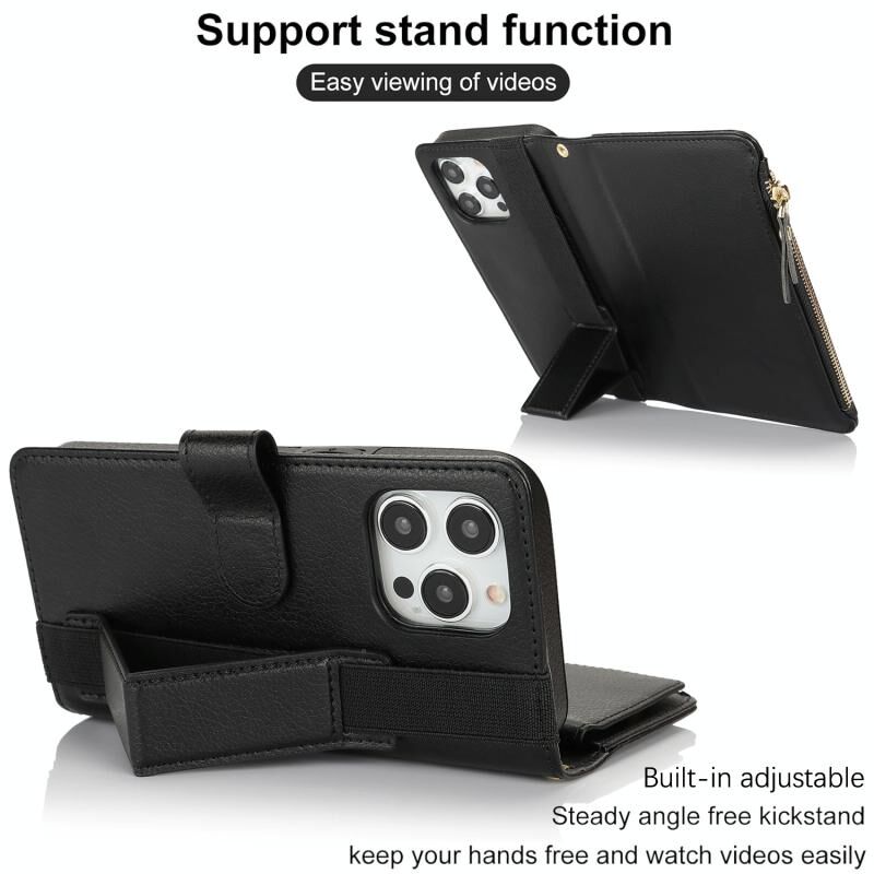 Για iPhone 12 / 12 Pro Θήκη Χεριού με Φερμουάρ και Προστασία RFID από Δέρμα (Μαύρο)