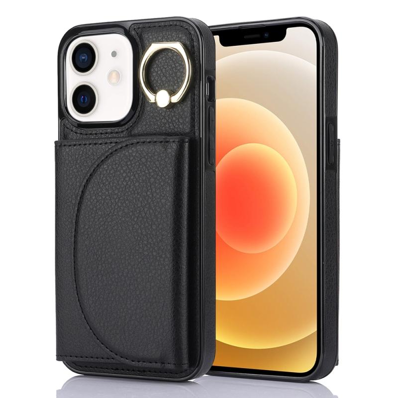 For iPhone 12 / 12 Pro YM007 Ring Holder Card Bag Skin Feel Phone Case(Black)
