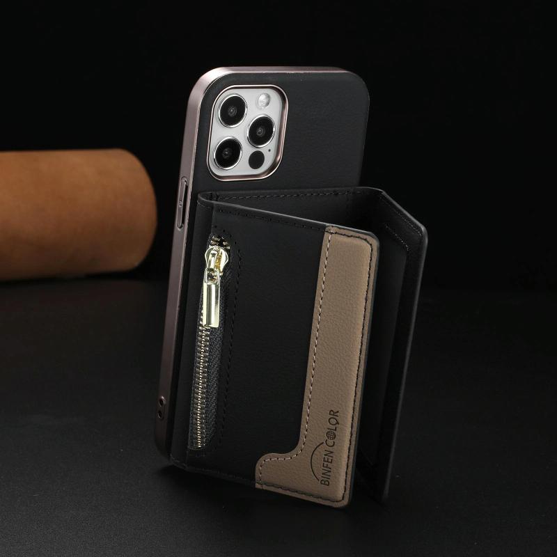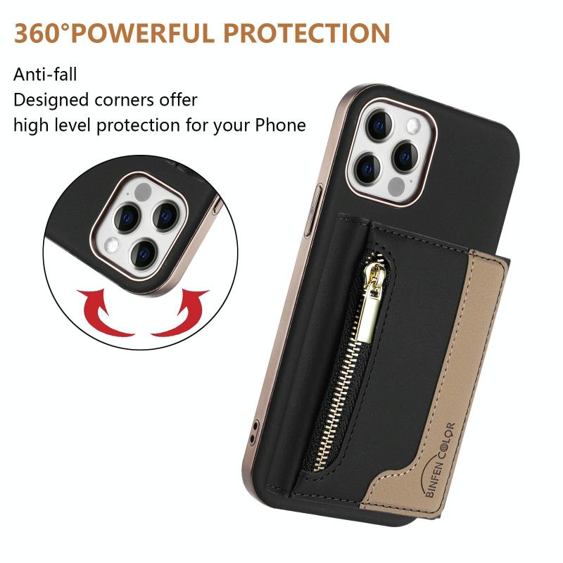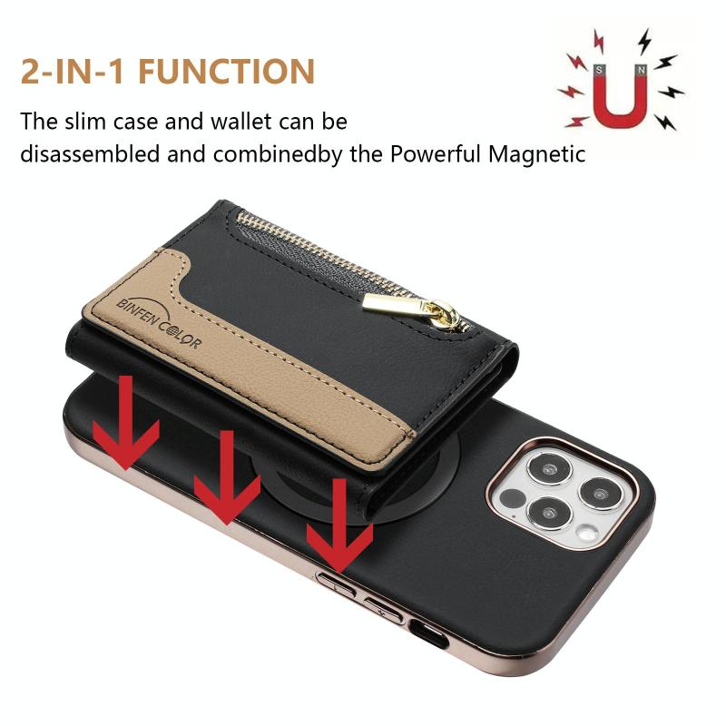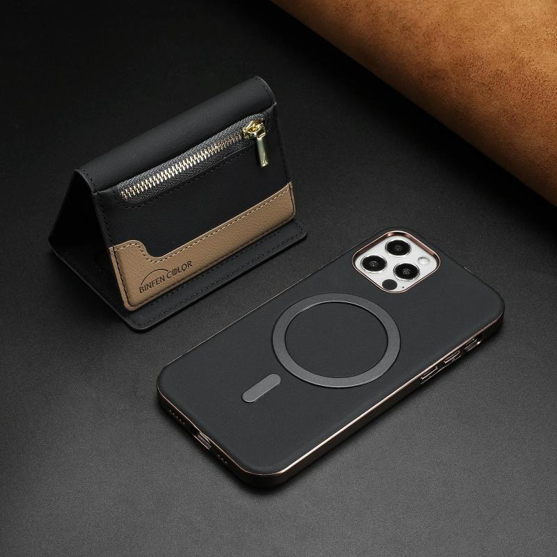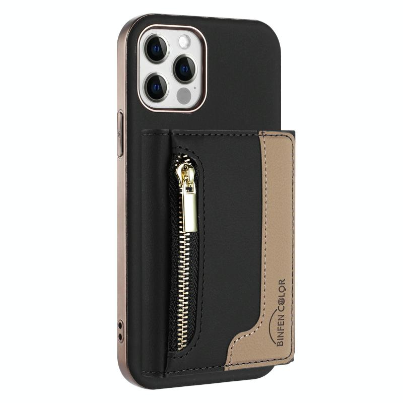 For iPhone 12 / 12 Pro Zipper Horizontal Magnetic Card Bag RFID MagSafe Phone Case(Black)