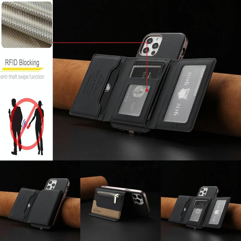 2. Magnetic Tri-Fold Wallet Design: Features a horizontal fold with a strong magnetic closure for easy access and secure storage.