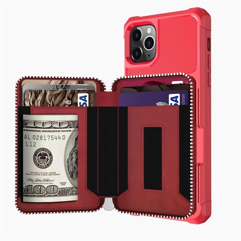 Για iPhone 12 / 12 Pro Θήκη Πορτοφολιού με Φερμουάρ και Κάρτες από Δερματίνη (Μαύρο)