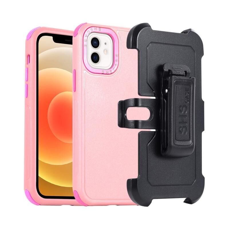 Θήκη iPhone 12 3 σε 1 με Σχολιδωτή Επικάλυψη PC + TPU (Ροζ+Ροζ Κόκκινο)