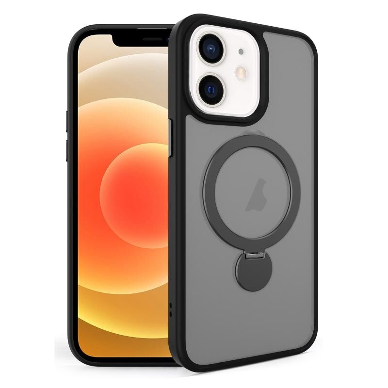 For iPhone 12 360 Degree Rotating MagSafe Magnetic Bracket Frosted Phone Case(Black)