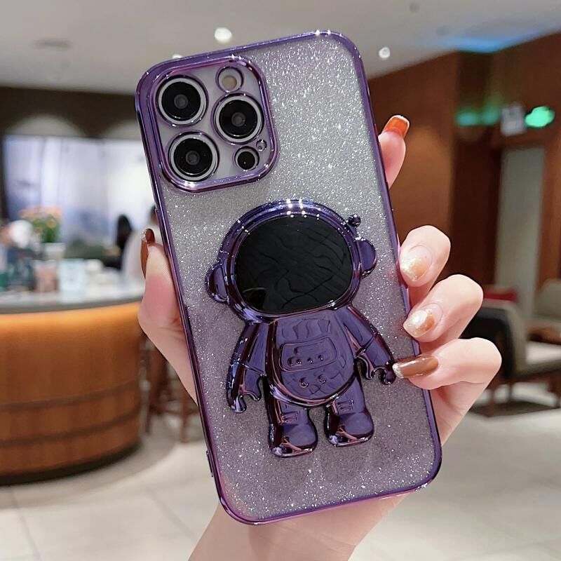 Θήκη τηλεφώνου για iPhone 12 με βάση αστροναύτη, διαβαθμισμένη λάμψη και σκόνη γκλίτερ (Μαύρο)