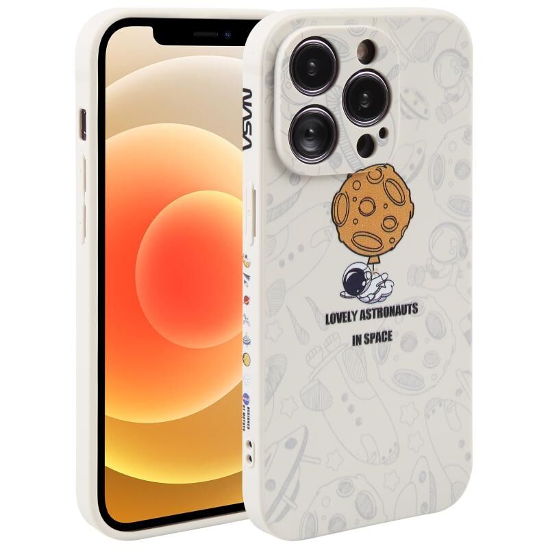 For iPhone 12 Astronaut Pattern Silicone Straight Edge Phone Case(Lovely Astronaut-White)