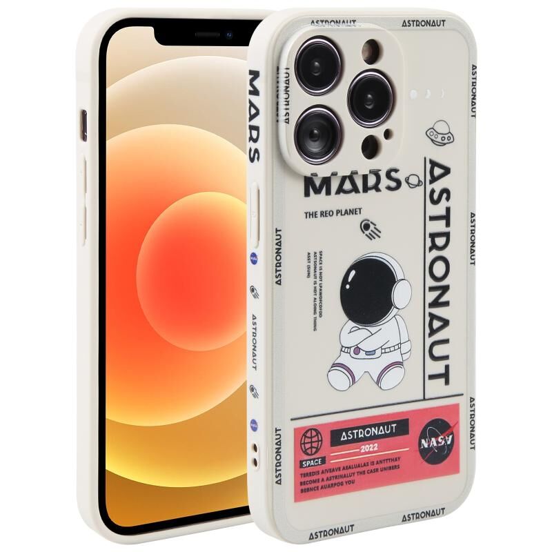 For iPhone 12 Astronaut Pattern Silicone Straight Edge Phone Case(Mars Astronaut-White)