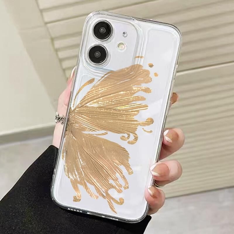 For iPhone 12 Butterfly Pattern Transparent TPU Phone Case(Gold)
