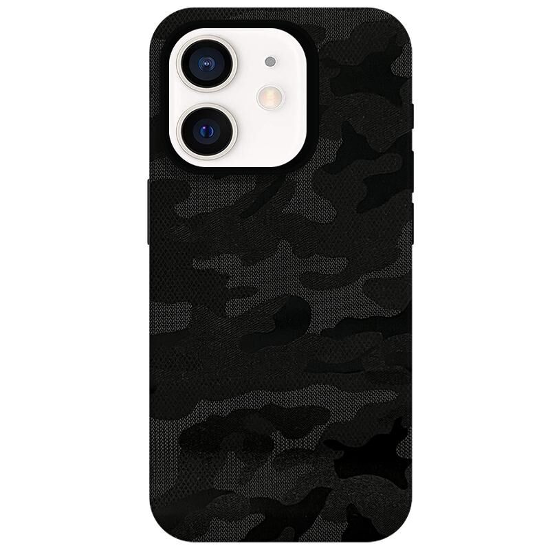 For iPhone 12 Camouflage Ice Feel Texture MagSafe PU Hybrid PC Phone Case(Black)
