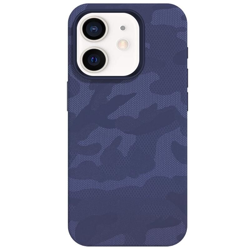 For iPhone 12 Camouflage Ice Feel Texture MagSafe PU Hybrid PC Phone Case(Blue Purple)