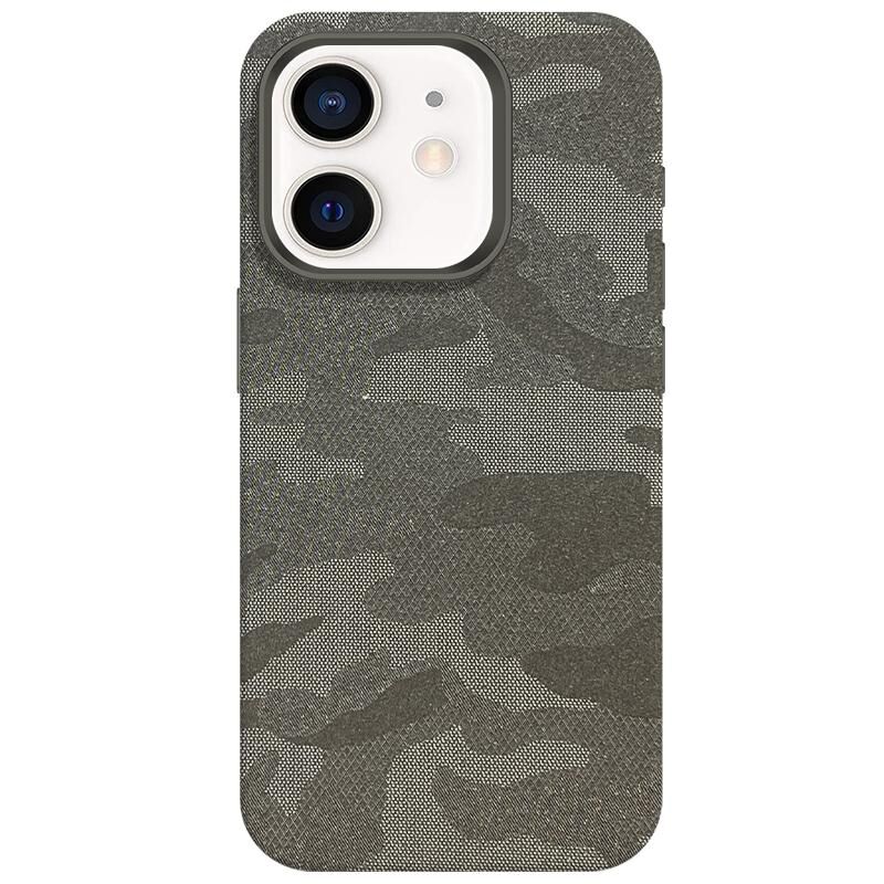For iPhone 12 Camouflage Ice Feel Texture MagSafe PU Hybrid PC Phone Case(Grey)