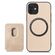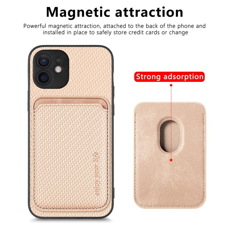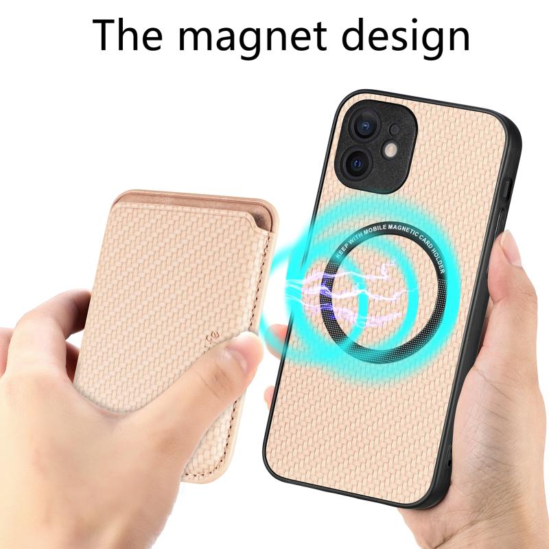 For iPhone 12 Carbon Fiber Leather Card Magsafe Magnetic Phone Case(Khaki)