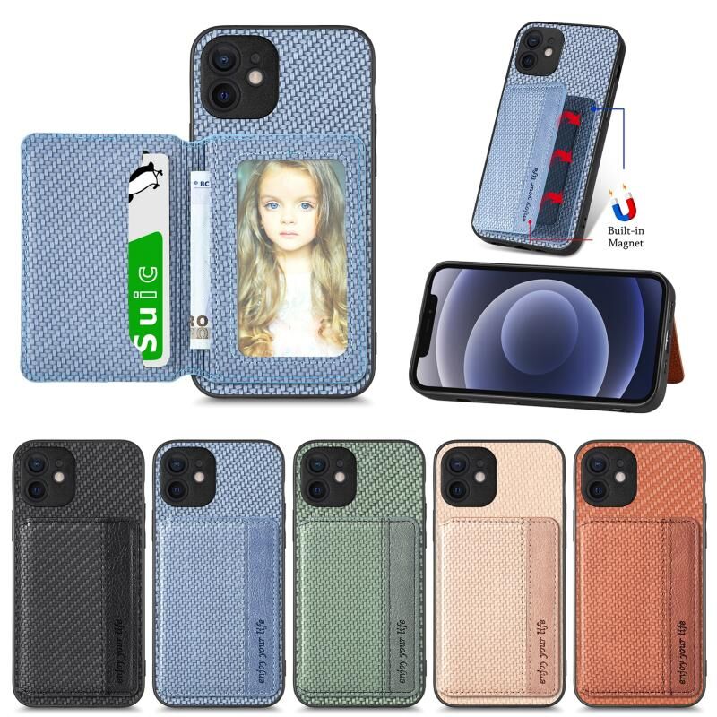 Θήκη τηλεφώνου για iPhone 12, τσάντα κάρτας με μαγνητική βάση από ανθρακονήματα (Μπλε)