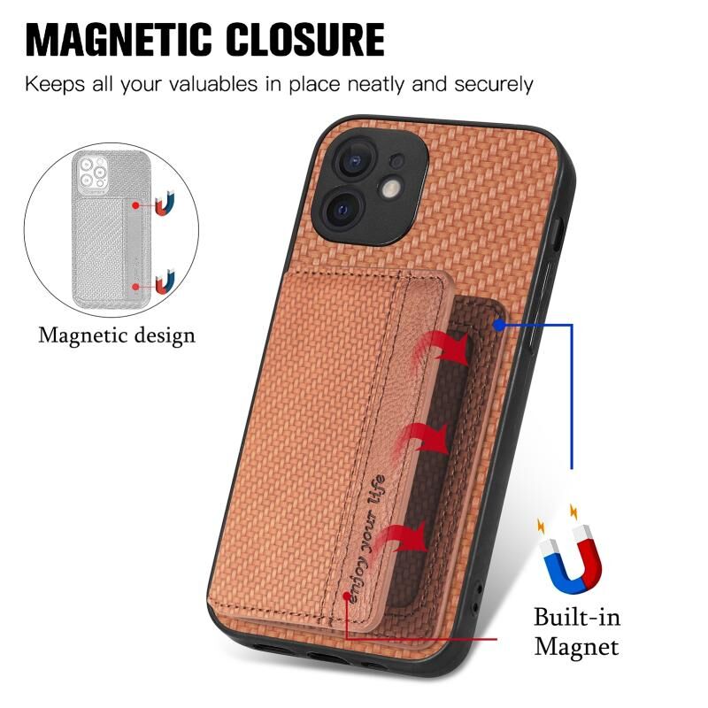 Θήκη τηλεφώνου για iPhone 12, τσάντα κάρτας με μαγνητική βάση από ανθρακονήματα (Μαύρο)
