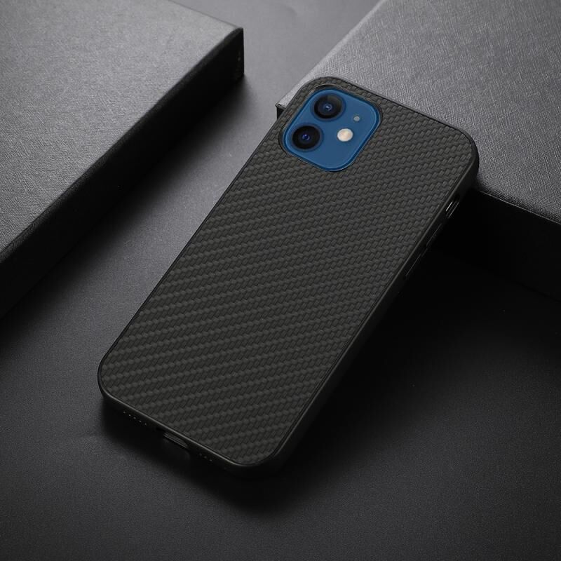 Θήκη Προστασίας για iPhone 12 από Ανθρακονήματα, PU + PC + TPU, Ανθεκτική σε Κραδασμούς (Μαύρο)