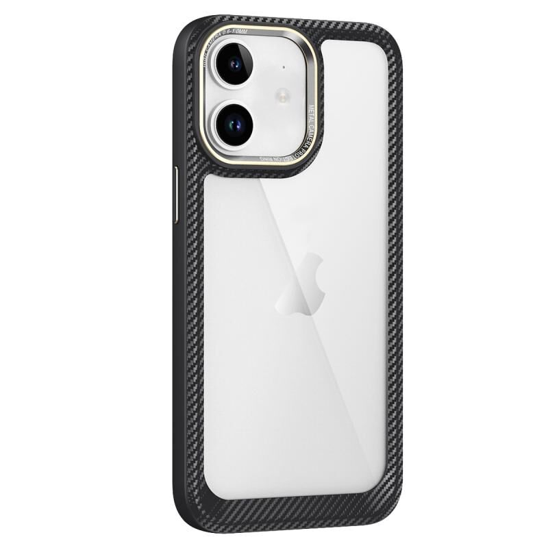 For iPhone 12 Carbon Fiber Transparent Back Panel Phone Case(Black + Transparent)