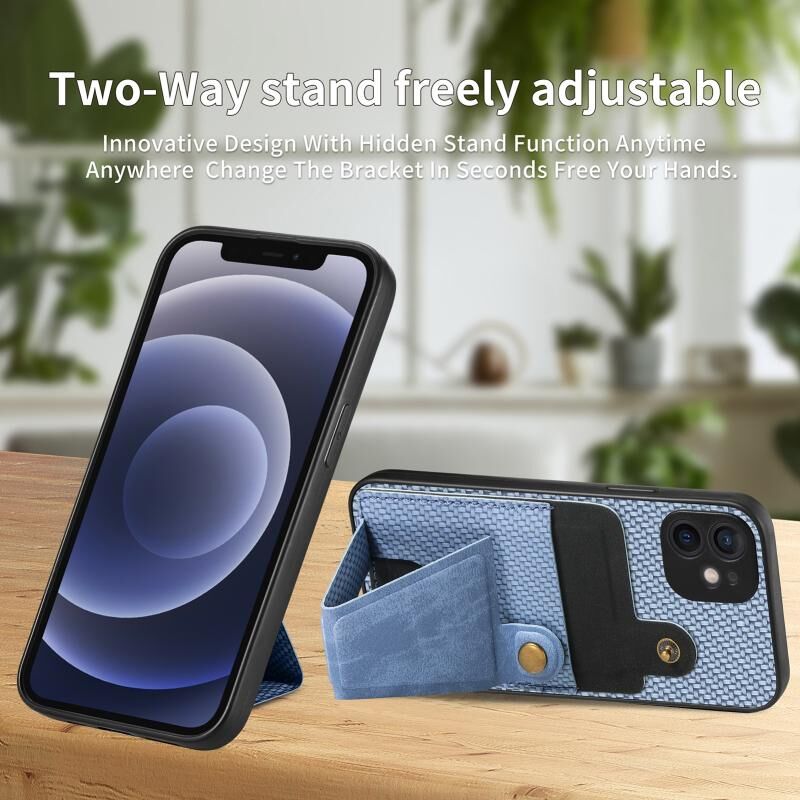 For iPhone 12 Carbon Fiber Wallet Flip Card K-shaped Holder Phone Case(Blue)