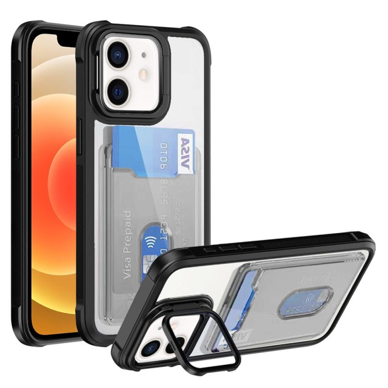 For iPhone 12 Card Bag Holder Acrylic Hybrid TPU Phone Case(Black)
