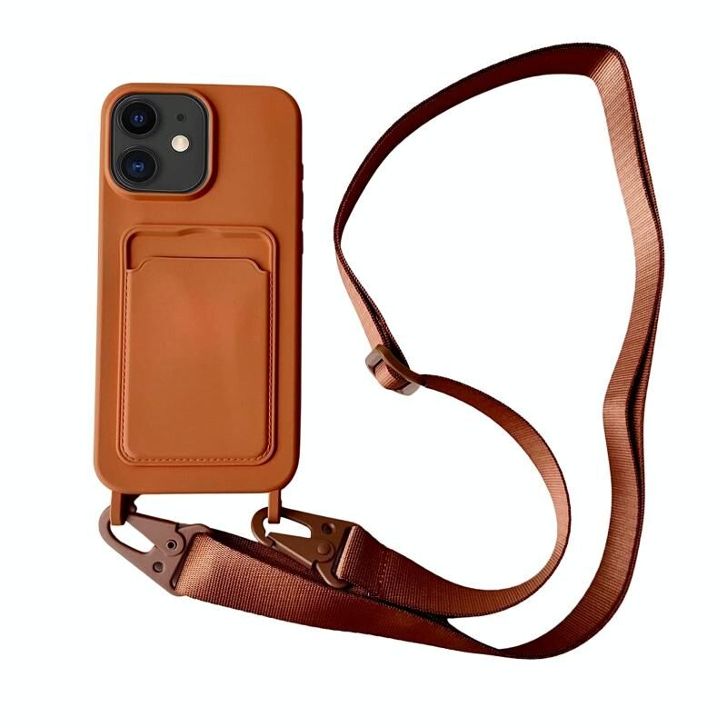 Θήκη για iPhone 12 με θήκη κάρτας, υγρή σιλικόνη με κορδόνι (Μαύρο)