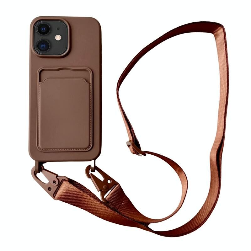 Θήκη για iPhone 12 με θήκη κάρτας, υγρή σιλικόνη με κορδόνι (Καφέ)